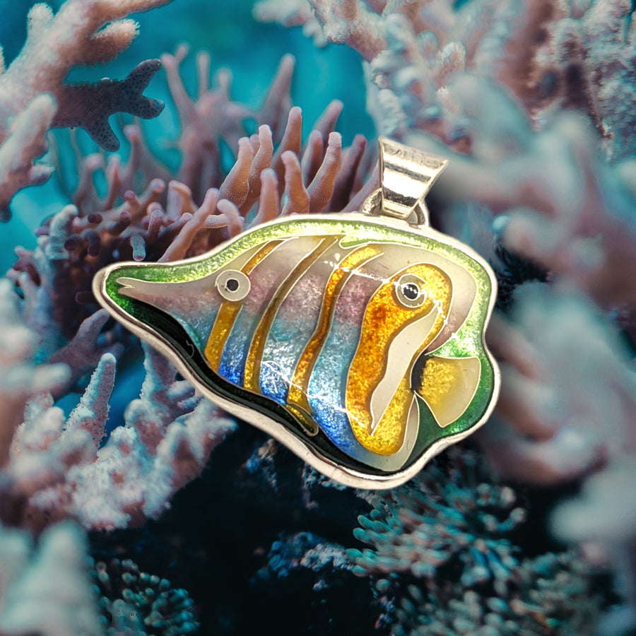 This Butterfly Fish Pendant is inspired by the vibrancy of the coral reef and it's amazing ecosystem. 10% of the sale of this piece will go to the Coral Restoration Foundation, an organization who's core mission is to restore coral reefs, to educate others on the importance of our oceans, and to use science to further coral research and coral reef monitoring techniques.